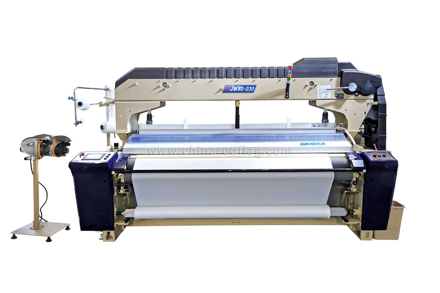 JW82噴水織機是在進口機型基礎上加以改進的新機型。全系列采用電子松經、電子卷取,可實現變緯密織造。公司自主研發的智能化控制系統,可實現整機參數在方便、友好的人機界面上的全部設定。